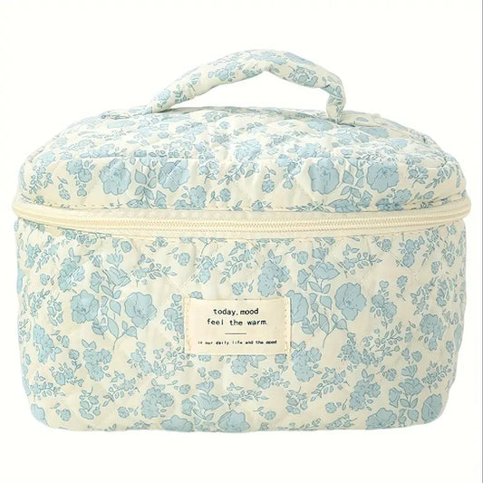 3 Pcs Cotton Quilted Makeup Bag Set, Floral Cotton Cosmetic Bag