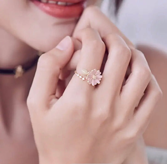 Dainty Pearl Clover Floral Micro Pave Gold Quatrefoil Ring