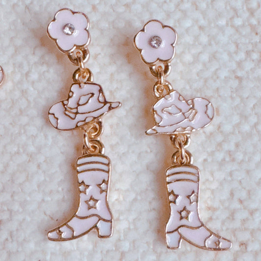 Metal Bow Floral Ceramic Ball Dangle Earring