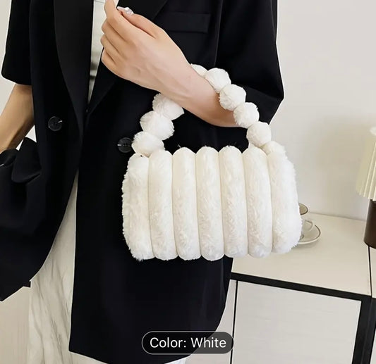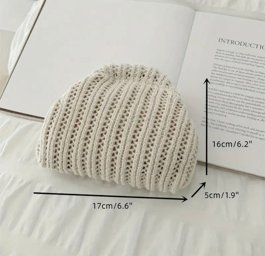 Ivory Hollow-Out 90s Classic Bag Chic Mini Vintage Knit Handbag - clutch