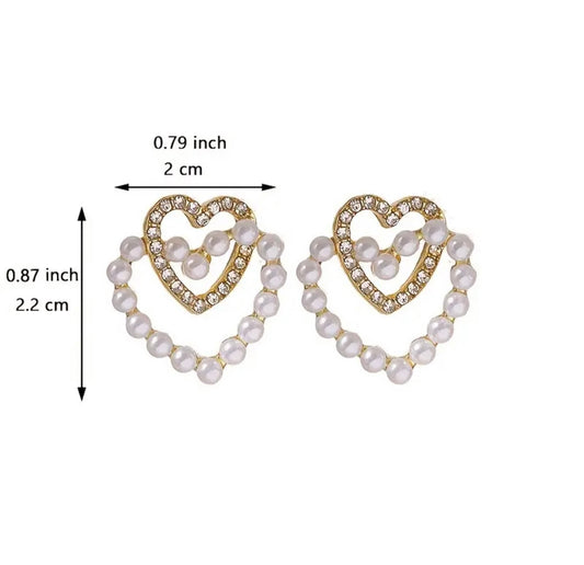 Simple Double Love Faux Pearl Earrings 18K Gold Plated Jewelry
