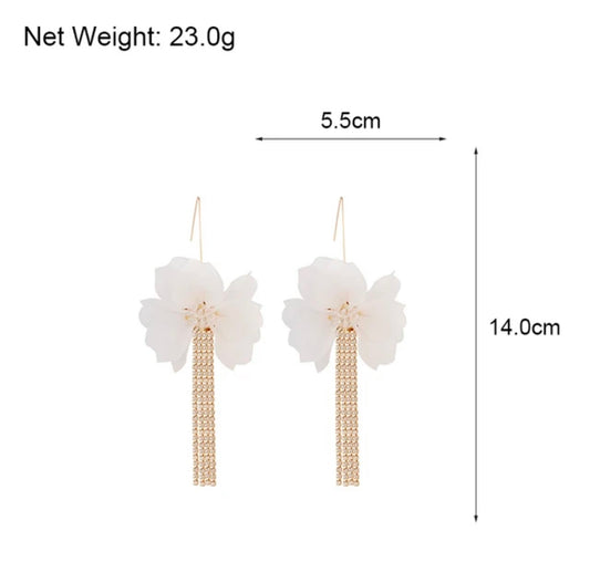 Bold White Floral Dangle Rhinestone Earrings