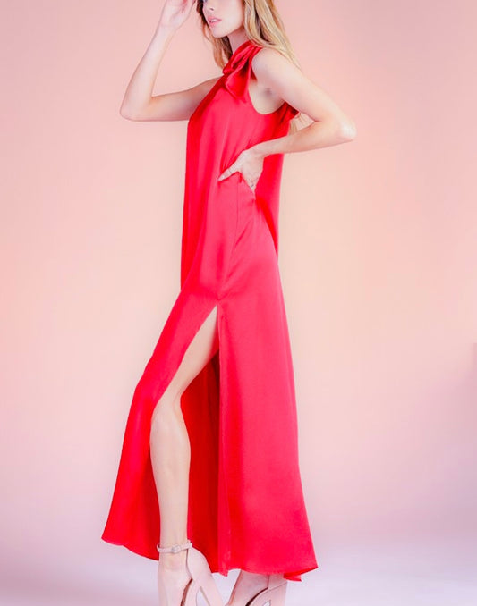 • Adele Red Satin Tie One Shoulder Maxi Dress - Maxi Dresses - essecoco