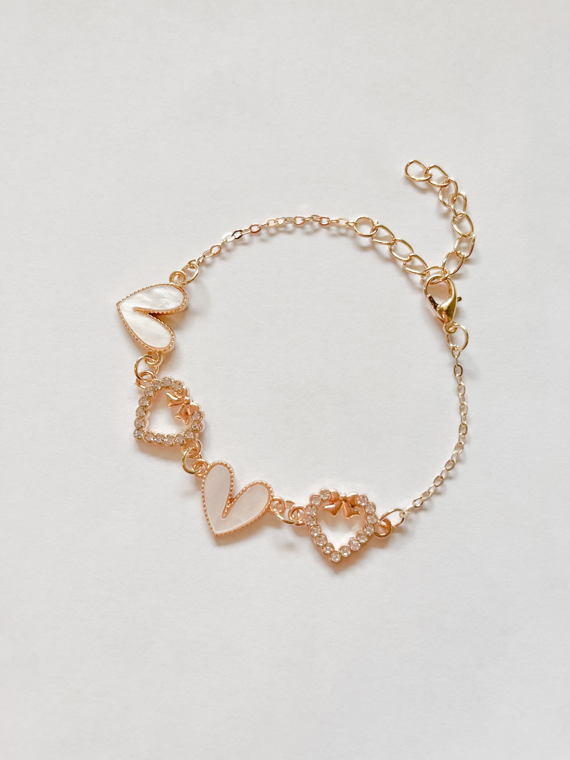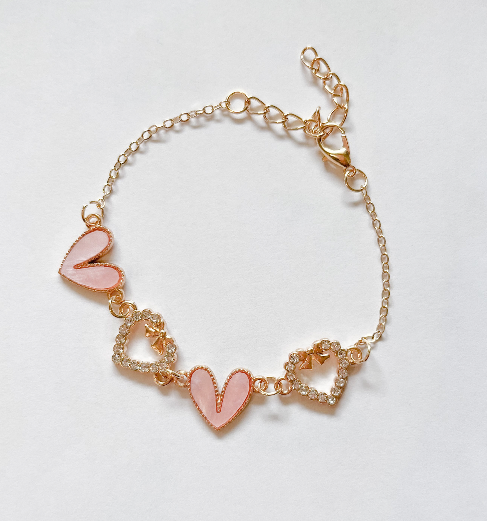 - Enamel Stone Paved Heart Link Bracelets •gold tone in ivory pearl, light pink, lavender, light blue and black