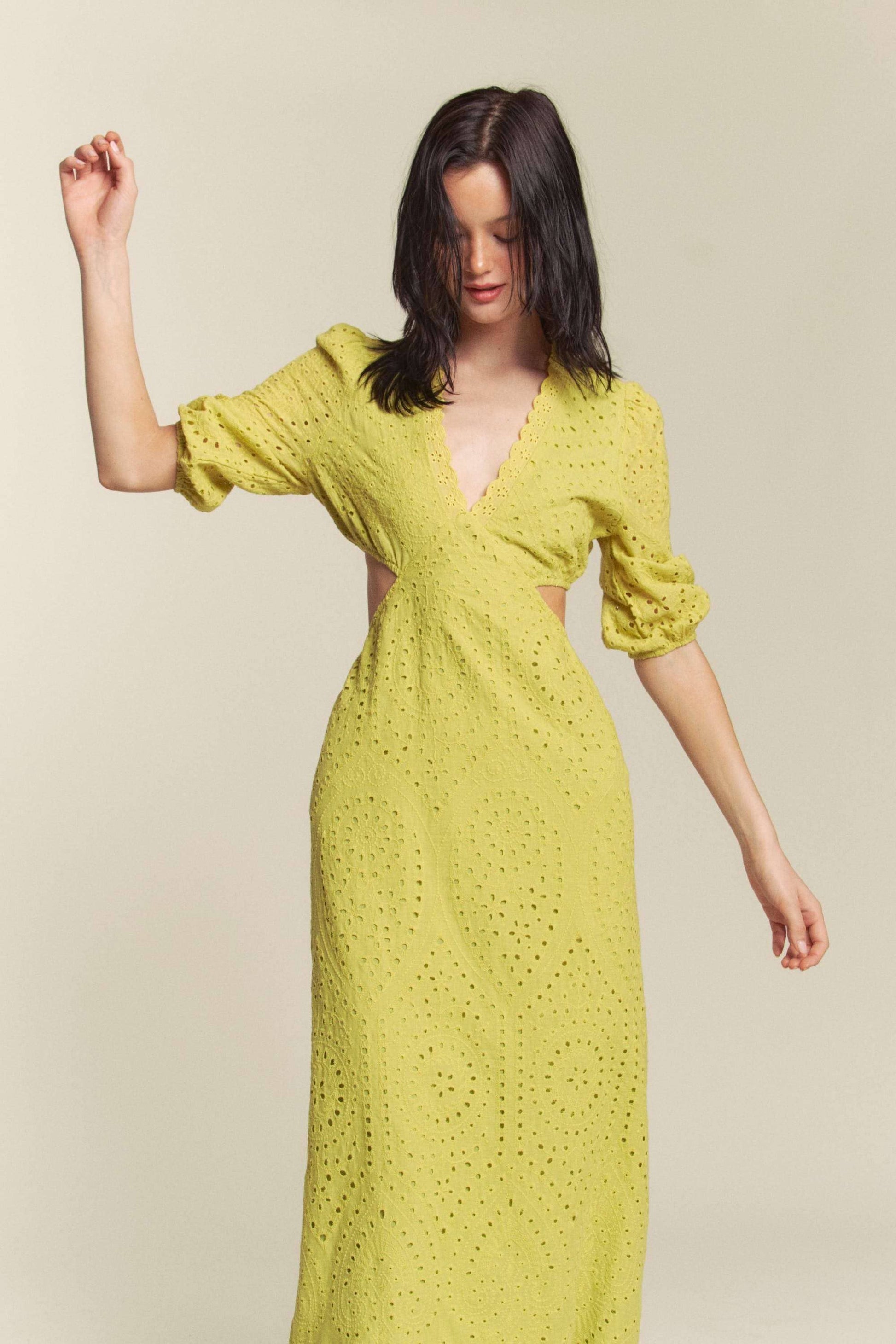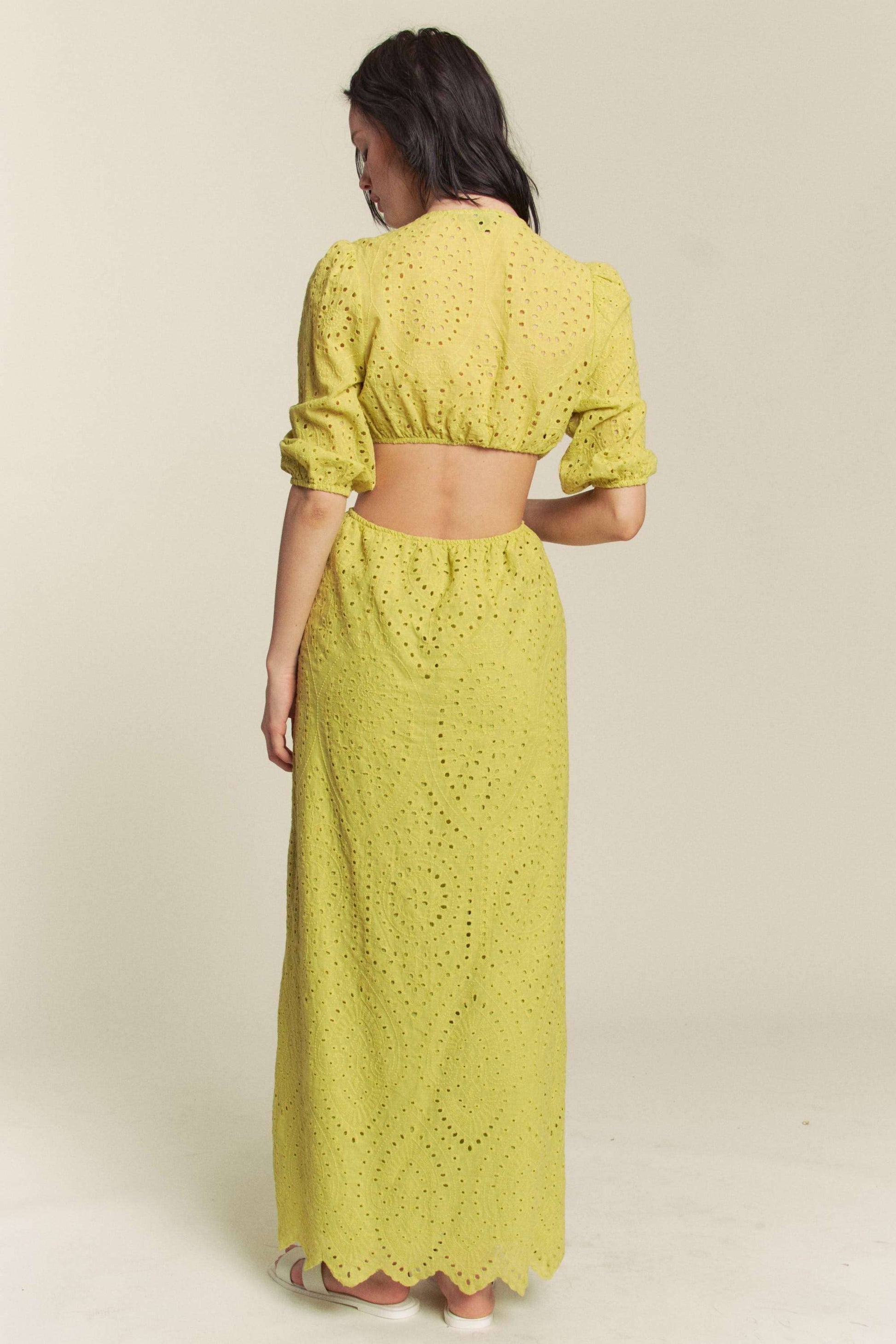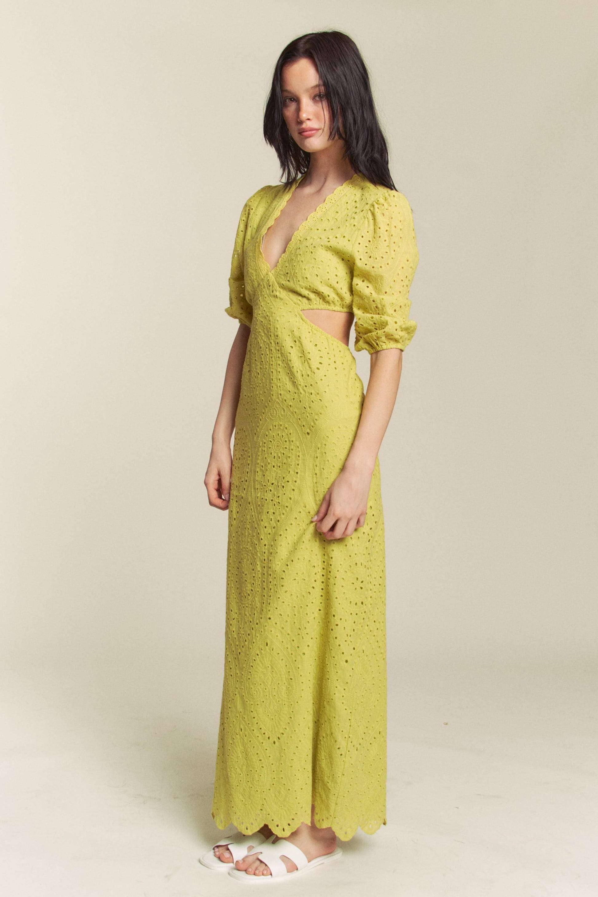 Aria Kiwi Eyelet Embroidered Cut Out Maxi Dress