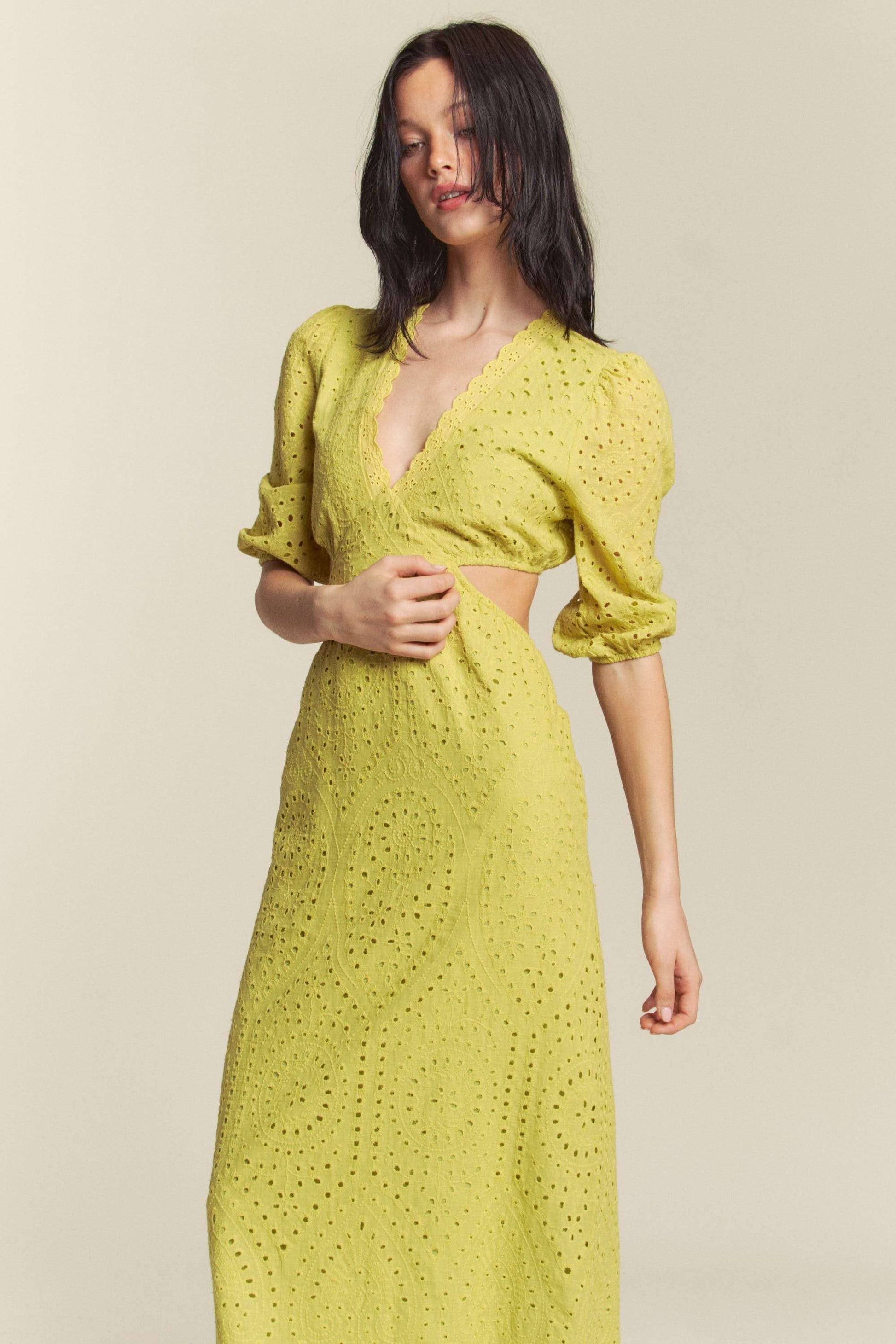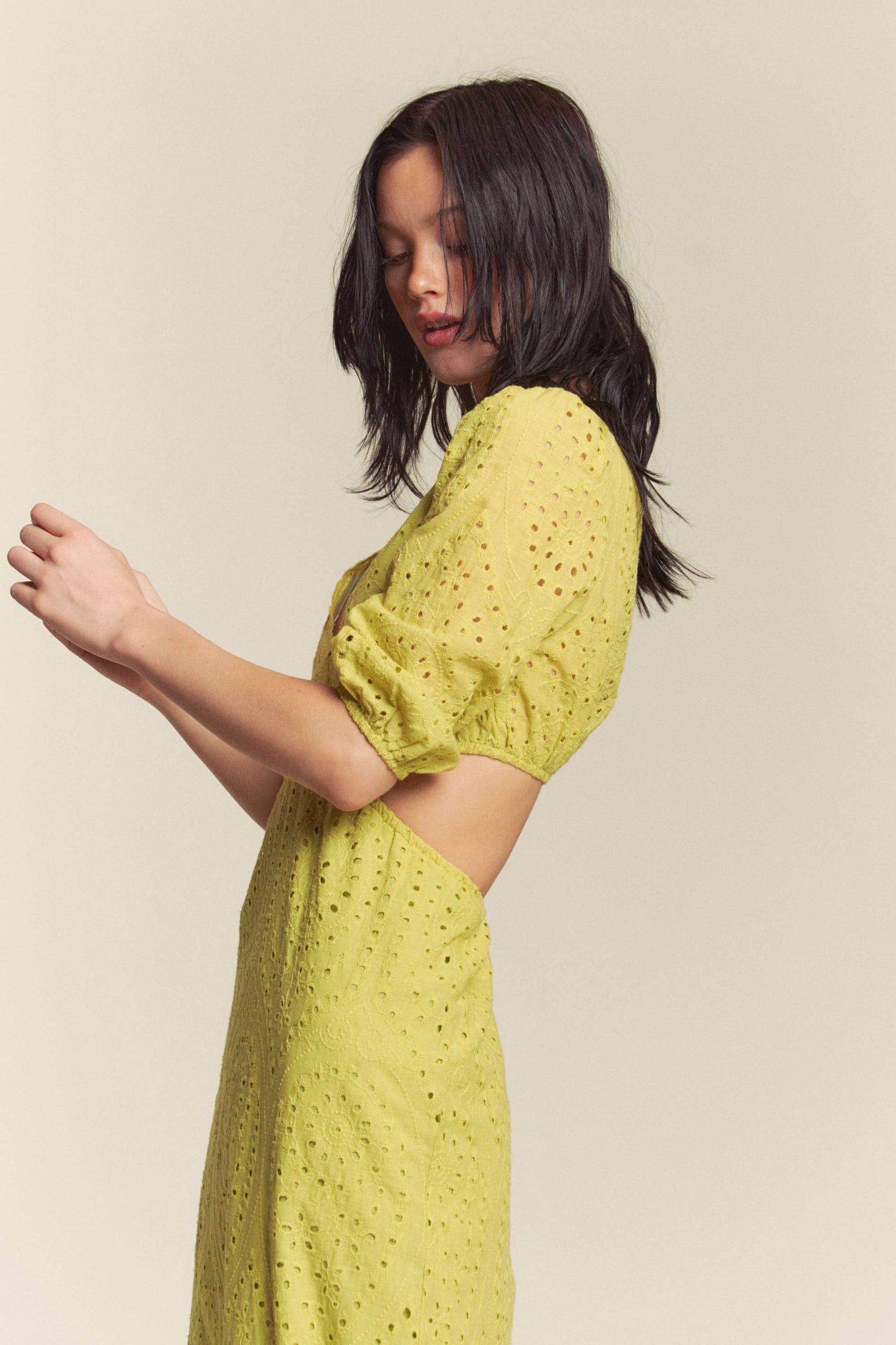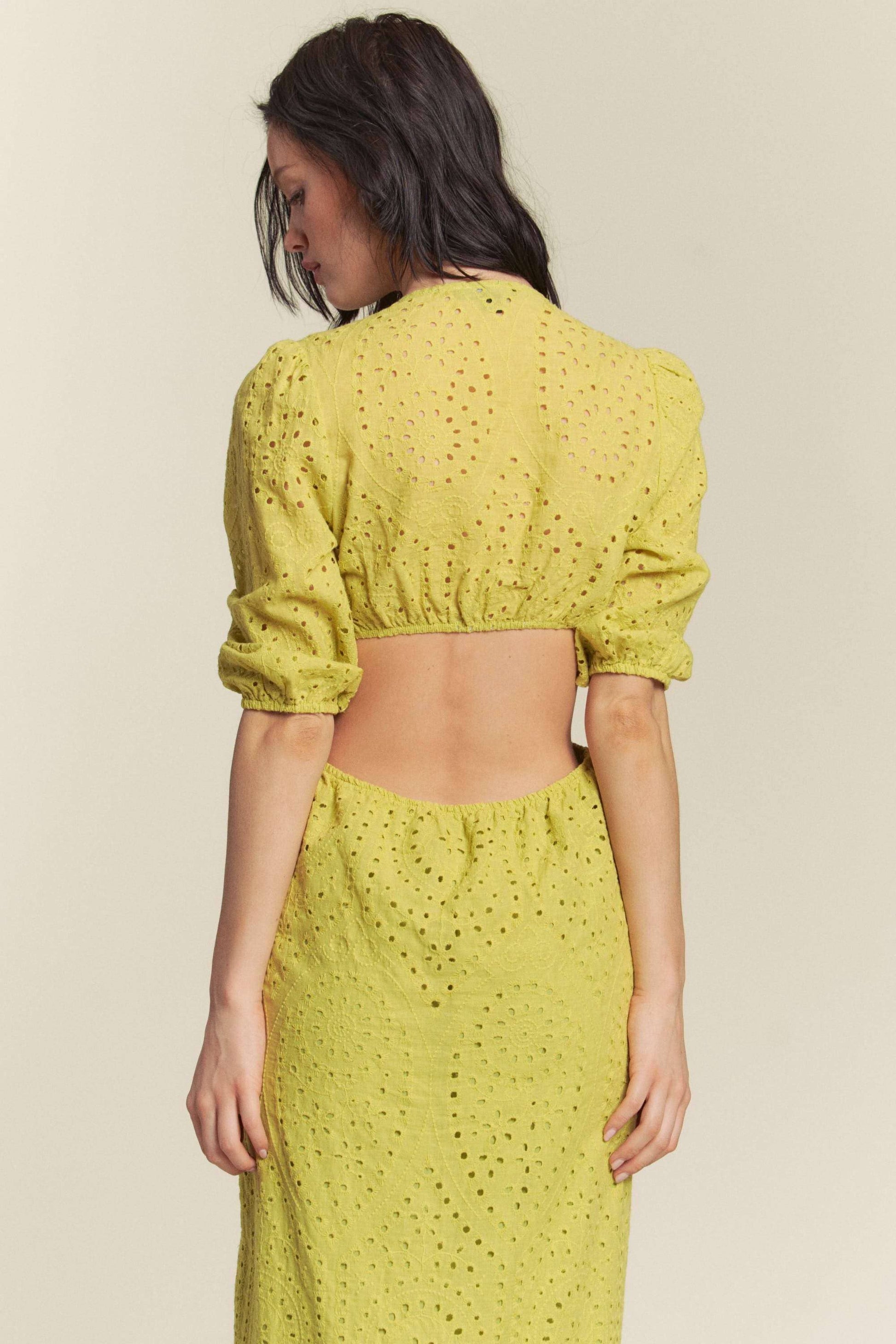 Aria Kiwi Eyelet Embroidered Cut Out Maxi Dress