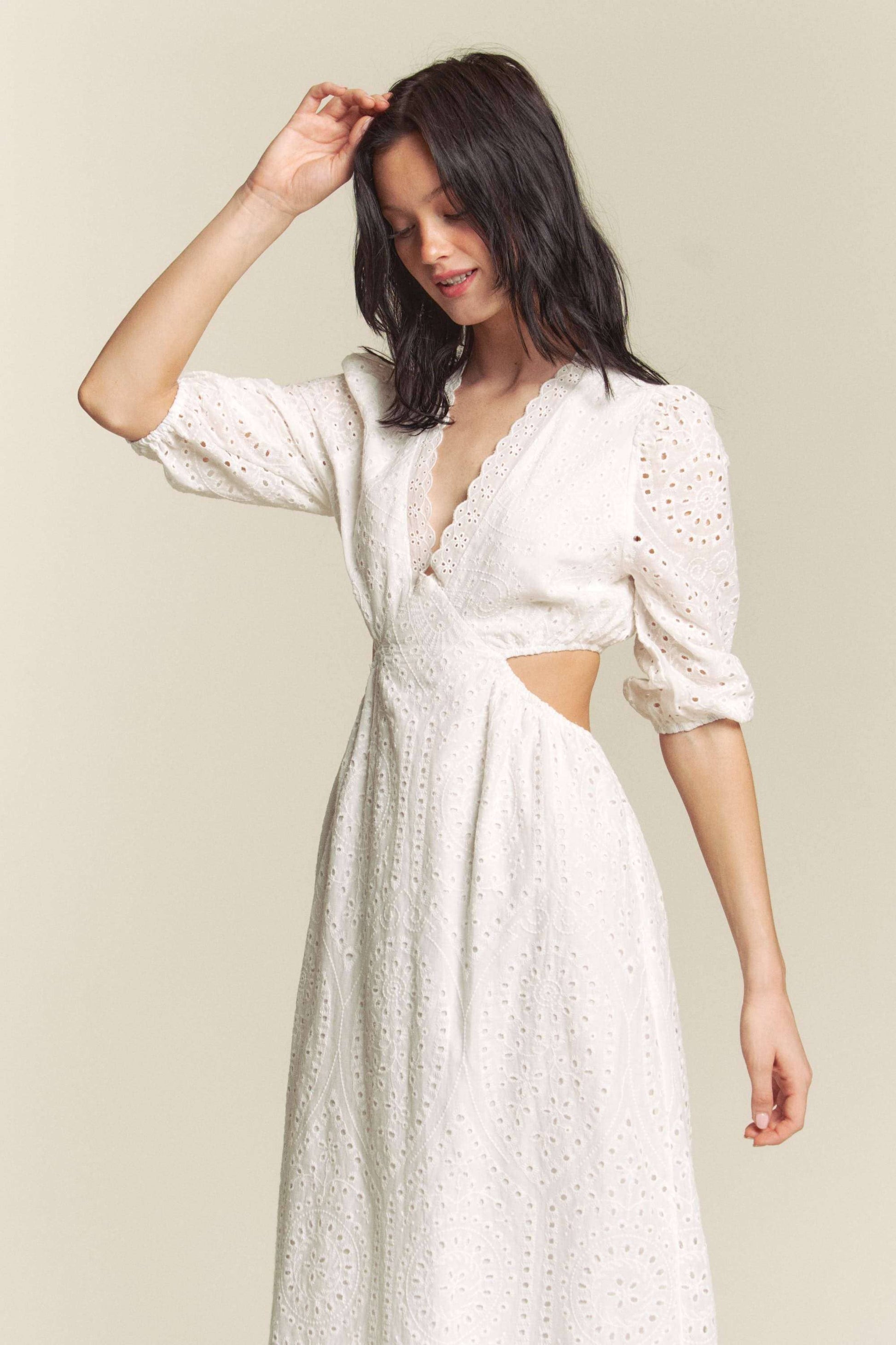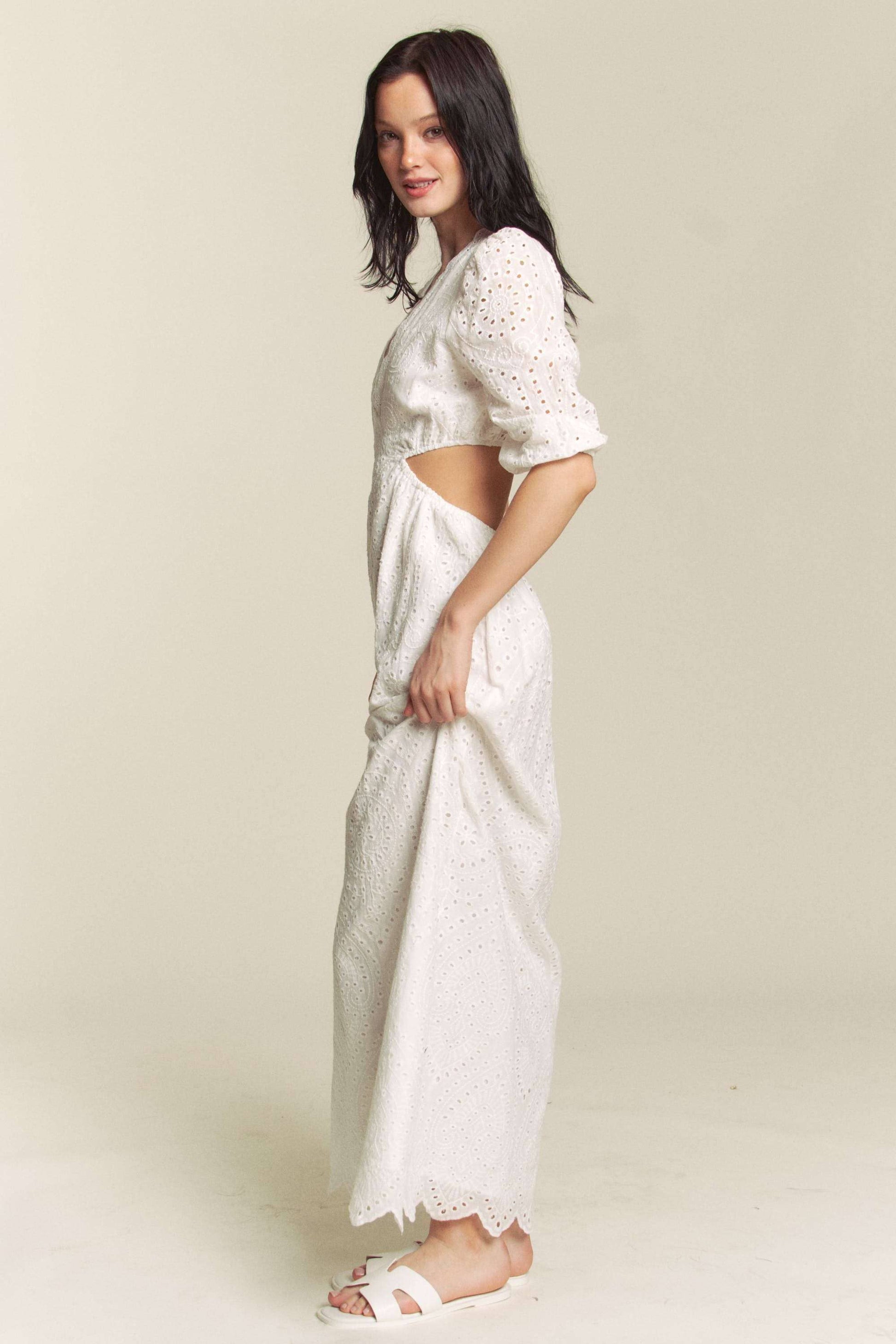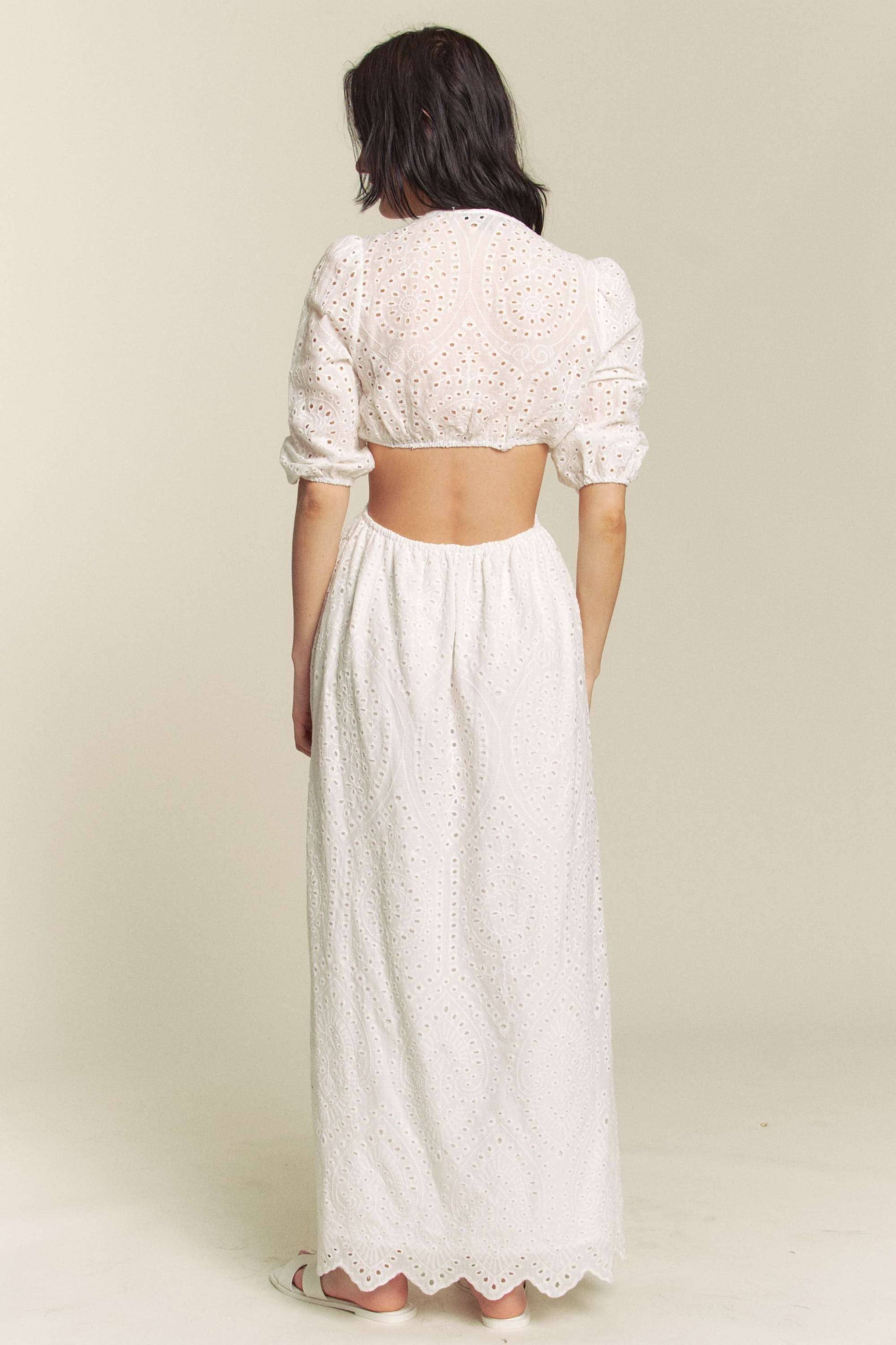 EYELET EMBROIDERED CUT OUT MAXI DRESS